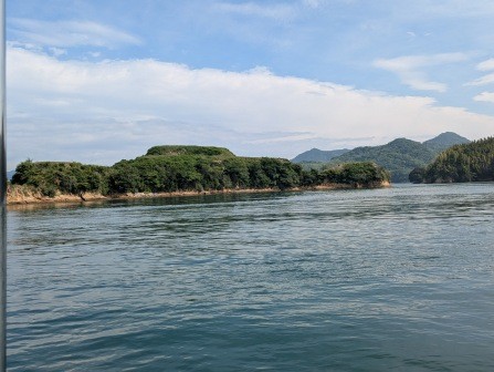 上が平らになっている島が能島で、村上氏が活動拠点とした海賊の城「能島城」があるところです。
