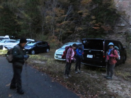 ここから林道を急ぎ、駐車場には17時15分到着しました。