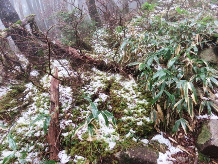 8合目を過ぎたあたりから登山道の横には雪が積もっていました。昨日降ったのでしょう。
