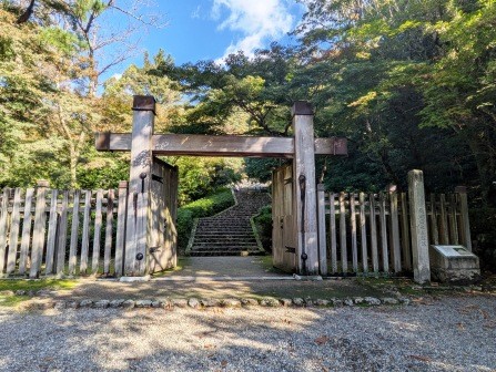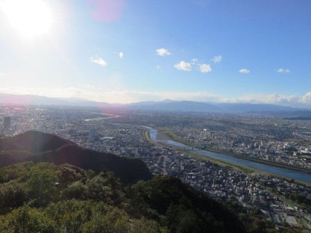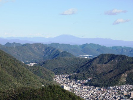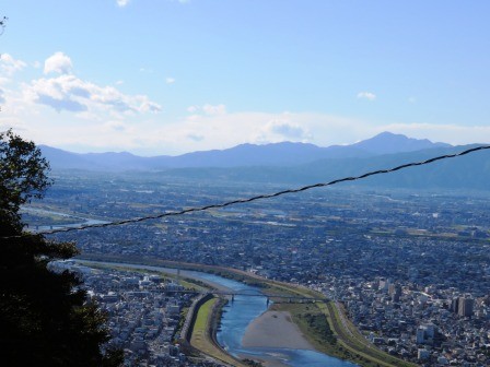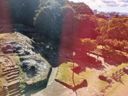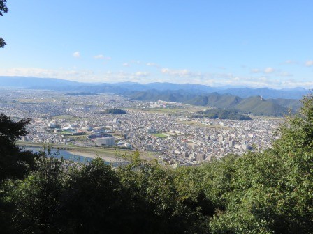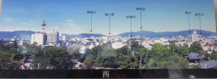 13時30分、ロープウェイ乗り場に行くことができました。乗り場から織田信長居館跡を望むことができました。
