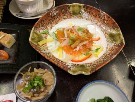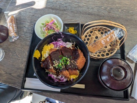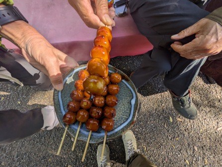 ゆっくりとお昼を食べる時間はないとのこと、五平餅とおこわでお腹を満たしました。(13時48分)