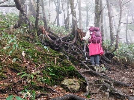 景色も美しかったし、岩場と木の根道の急登が続いたので、かなりの時間を要しました。