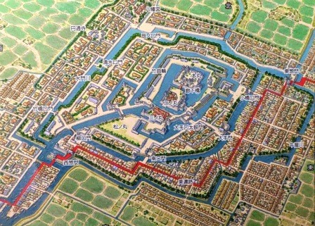 水堀を三重・四重にも巡らせている様子が伺えます。